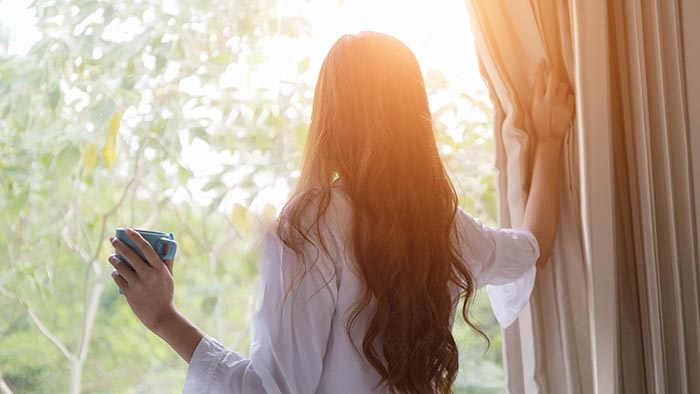 Tiếp đó, sau khi thức dậy, cô luôn đảm bảo mình được tiếp xúc với ánh sáng buổi sáng. Chỉ cần mở rèm cửa và để ánh nắng chiếu lên khuôn mặt vài phút cũng đã được khoa học chứng minh là giúp giảm các triệu chứng trầm cảm, đặc biệt với người mắc rối loạn cảm xúc theo mùa.