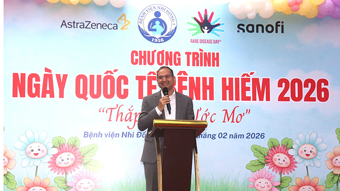 Tổng Giám đốc AstraZeneca Việt Nam phát biểu trong sự kiện hưởng ứng Ngày quốc tế Bệnh Hiếm tại Bệnh viện Nhi đồng 1 (TP.HCM)