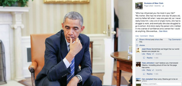 Trở thành nhân vật được phỏng vấn của trang Facebook "Humans of New York" ngày 6/2, những tâm sự chưa từng được ông Obama thổ lộ về người mẹ của ông đã nhận được gần 850.000 lượt thích và gần 85.000 chia sẻ sau hơn 1 ngày đăng tải.