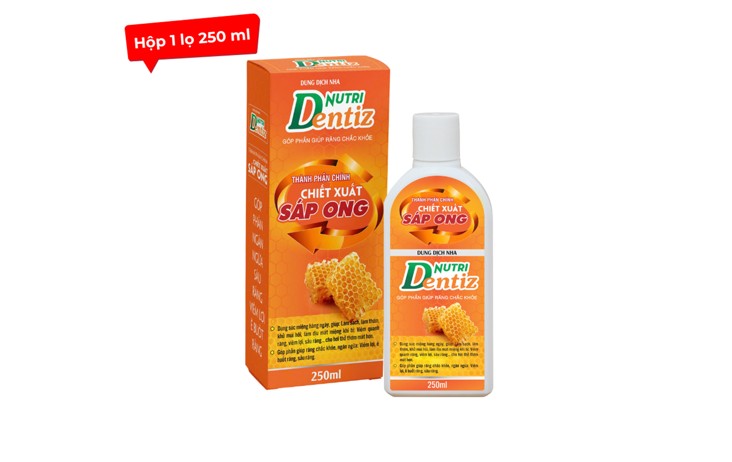 Dung dịch nha Nutridentiz chứa thành phần chiết xuất sáp ong trong cồn, chiết xuất cùi quả cau, chiết xuất lá trầu không, chiết xuất vỏ quả chay dùng súc miệng hàng ngày giúp làm sạch, làm thơm, khử mùi hôi miệng, giúp làm mát miệng khi bị viêm quanh răng, viêm lợi, sâu răng...Góp phần giúp răng chắc khỏe, ngăn ngừa viêm lợi, ê buốt răng, sâu răng.