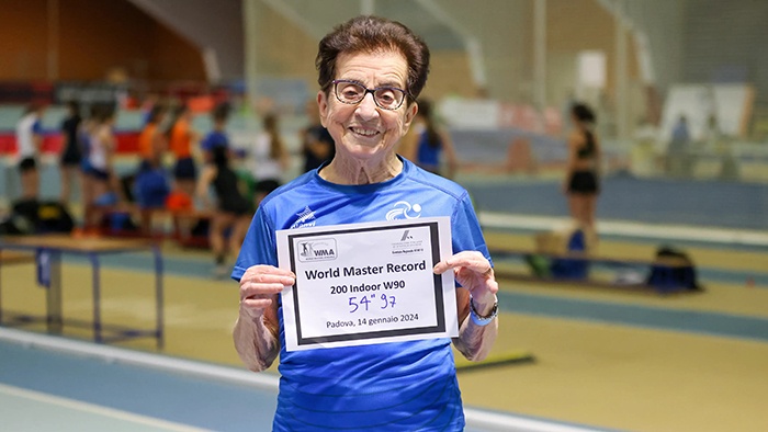 Suốt 40 năm qua, bà Emma Maria Mazzenga (Padua, Italia) vẫn kiên trì tập chạy ít nhất 3 buổi mỗi tuần trên sân vận động địa phương hoặc bên bờ sông. Chính sự bền bỉ ấy đã giúp bà Mazzenga lập tới 4 kỷ lục thế giới dành cho nữ vận động viên trên 90 tuổi.