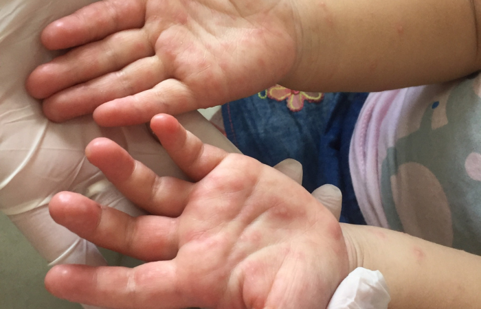 Tay chân miệng là bệnh truyền nhiễm lây từ người sang người, dễ gây thành dịch do virus đường ruột gây ra. Bệnh lây chủ yếu theo đường tiêu hoá, nguồn lây chính từ nước bọt, phỏng nước và phân của trẻ nhiễm bệnh. Bệnh thường gặp ở trẻ độ tuổi mẫu giáo do thói quen cho tay vào miệng.
