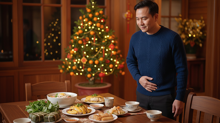 Nhiều người trong chúng ta bắt đầu kỳ nghỉ Tết với rất nhiều dự định lành mạnh như đi du lịch, tập yoga, bơi lội hay vận động nhiều hơn. Nhưng rồi, ngay cả khi không đi đâu xa, chỉ ở nhà đón Tết cùng gia đình, với mâm cỗ đủ đầy, rượu bia liên tục, bánh mứt lúc nào cũng sẵn trên bàn… dễ khiến bạn ăn không kiểm soát. Trước khi kịp nhận ra, đã là ngày mùng 5 Tết, và cơ thể bạn rơi vào trạng thái nặng nề, quá tải.