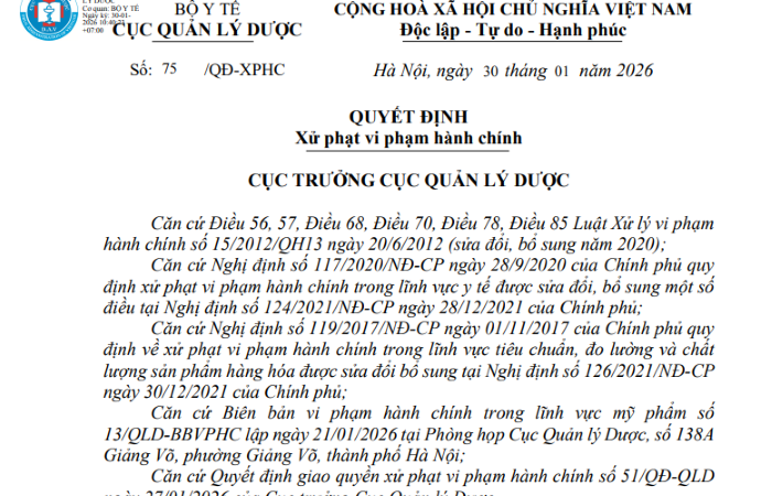 Ngoài hình thức phạt tiền, cơ quan quản lý buộc doanh nghiệp thu hồi toàn bộ số tiếp nhận phiếu công bố của 8 sản phẩm liên quan. Các sản phẩm ghi nhãn sai công dụng phải loại bỏ thông tin vi phạm; trường hợp không thể khắc phục, buộc tiêu hủy theo quy định. Với các sản phẩm có công thức không đúng hồ sơ công bố, doanh nghiệp phải tiêu hủy toàn bộ.