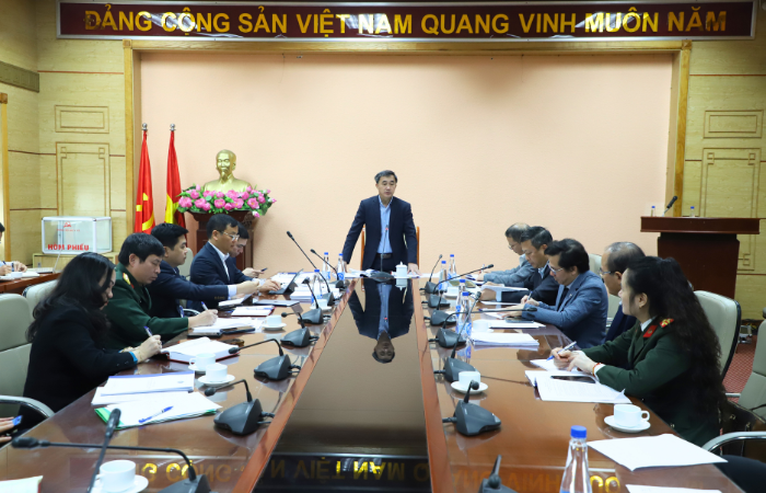 Toàn cảnh cuộc họp rà soát tiến độ thực hiện công tác y tế bảo đảm cho Đại hội Đại biểu toàn quốc lần thứ XIV của Đảng.