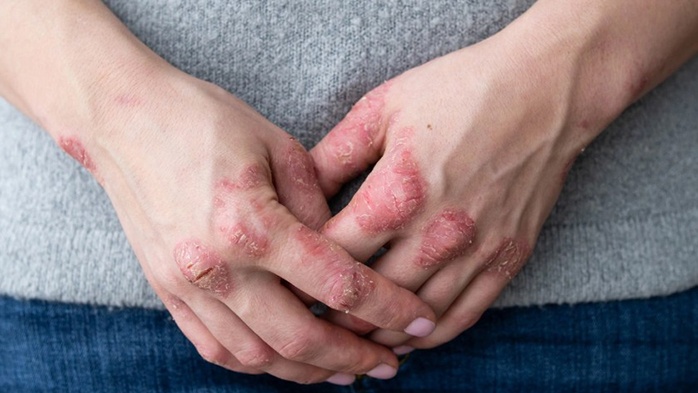 Vảy nến là bệnh tự miễn mạn tính, xảy ra khi hệ miễn dịch rối loạn và tấn công nhầm vào tế bào da, gây ra các mảng da đỏ, bong vảy và ngứa rát. Người bệnh vảy nến thường phải dùng thuốc dài ngày, đặc biệt là nhóm corticosteroid hoặc thuốc ức chế miễn dịch. Đây cũng chính là những loại thuốc có thể gây ảnh hưởng đến niêm mạc dạ dày, làm tăng nguy cơ viêm loét, trào ngược hoặc đau thượng vị.