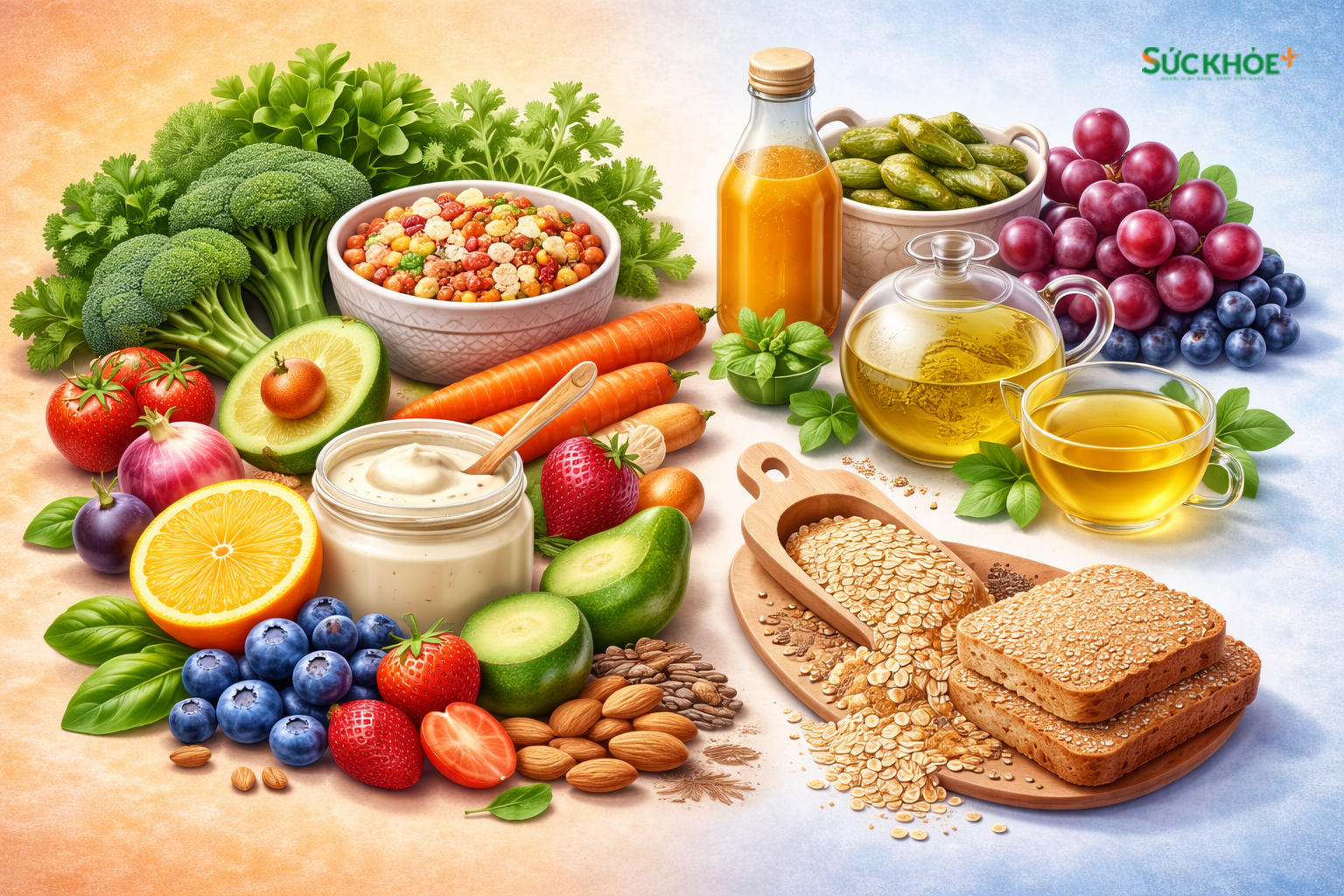 Ngoài ra, các thực phẩm giàu polyphenol như trà xanh, nho, lựu hay quả mọng như dâu tây, việt quất cũng chứa những hợp chất tự nhiên mà lợi khuẩn có thể chuyển hóa thành các phân tử nhỏ, góp phần bảo vệ mạch máu.