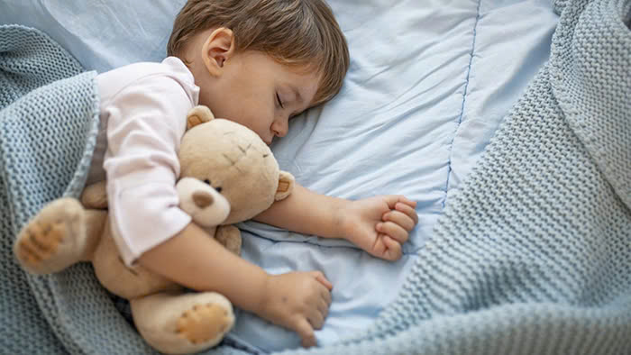 Với trẻ trên 1 tuổi, cha mẹ có thể cho bé ôm một món đồ "an ủi" như gối ôm hoặc thú bông để giúp con cảm thấy an toàn, dễ chìm vào giấc ngủ hơn.