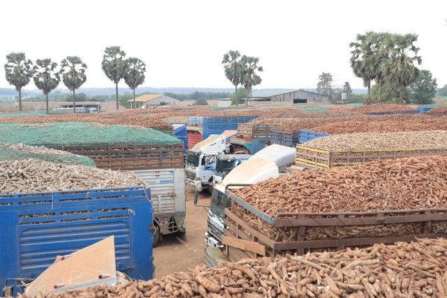 Hàng nông sản bị ách tắc, chờ thông quan tại cửa khẩu quốc tế Chàng Riệc, Tây Ninh, hôm 31/1. Ảnh: Nam An/VNE.