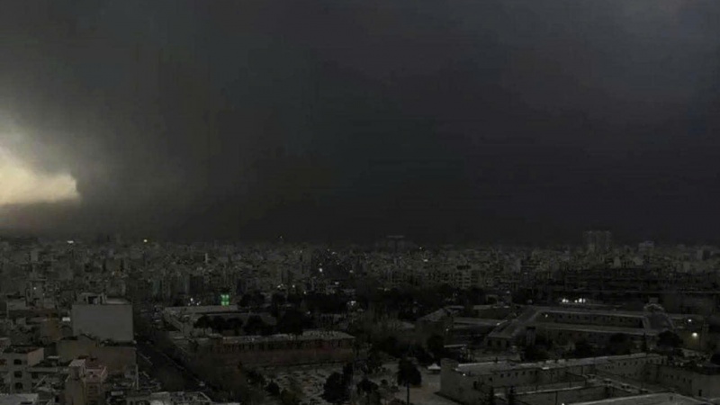 Cơn mưa đen xuất hiện sáng 10/3/2026 tại Tehran ở Iran (ảnh NYTimes)
