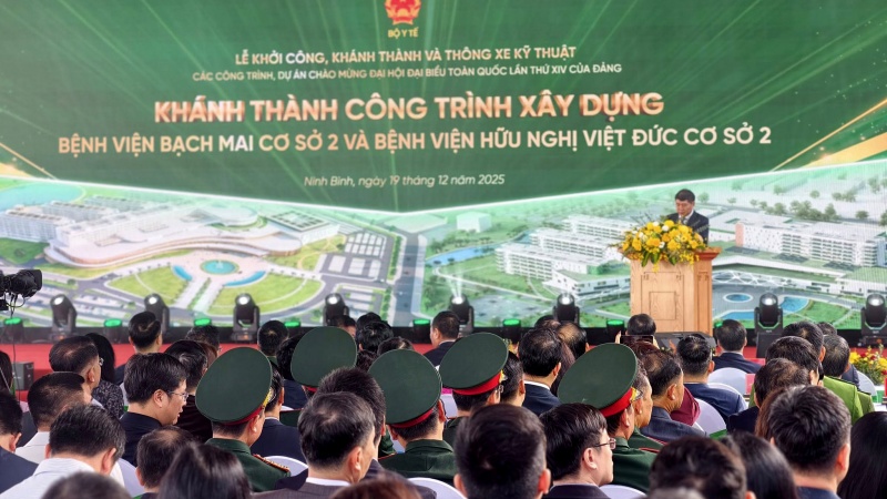 Sáng ngày 19/12/2025, tại tỉnh Ninh Bình, được sự đồng ý của Chính phủ và Thủ tướng Chính phủ, Bộ Y tế long trọng tổ chức Lễ khánh thành phần xây dựng công trình Bệnh viện Bạch Mai Cơ sở 2 và Bệnh viện Hữu nghị Việt Đức Cơ sở 2 - hai công trình y tế trọng điểm quốc gia, có quy mô lớn, hiện đại, kỹ thuật cao, ngang tầm các nước tiên tiến trong khu vực.