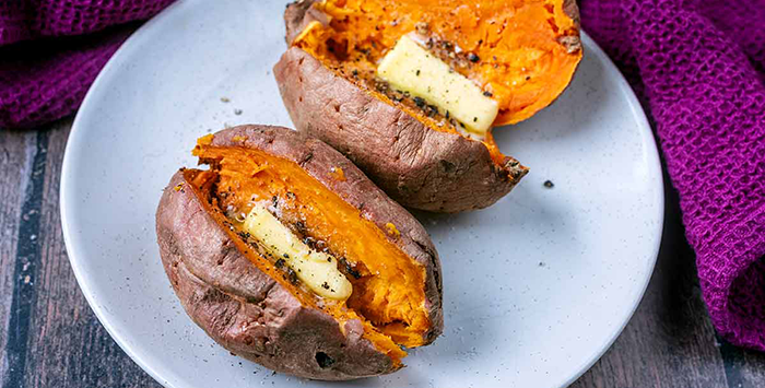 Khoai lang chứa tinh bột kháng - loại tinh bột giúp tạo cảm giác no lâu, giảm cảm giác thèm ăn. Đồng thời, tinh bột kháng cũng giúp giảm tích trữ mỡ, nhờ đó khoai lang trở thành lựa chọn phù hợp cho người đang kiểm soát cân nặng hoặc có nhu cầu giảm cân.