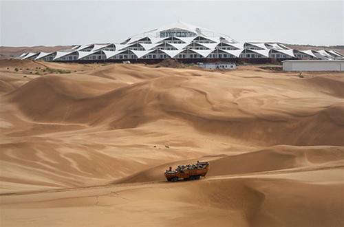 Theo huffingtonpost.com, sa mạc Xiangshawan hấp dẫn du khách bởi còn có khu nghỉ mát tuyệt vờiResort Desert Lotus - được các kiến trúc sư thiết kế với mô hình giống như những cánh buồm sóng sánh trên cát.