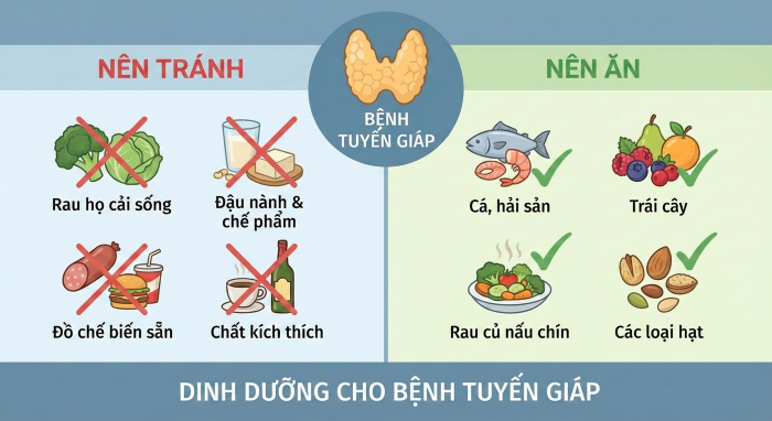 Đối với người bệnh suy giáp: Người bệnh suy giáp cần đặc biệt lưu ý đến các nhóm thực phẩm sau: