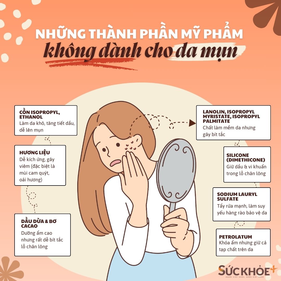Những thành phần không thân thiện với da mụn