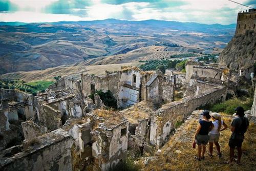 Du khách tham quan thị trấn Craco hoang tàn - Ảnh: geolocation.ws