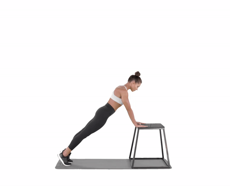 Bắt đầu ở tư thế chống đẩy, hai tay mở rộng hơn vai một chút. Lòng bàn tay đặt trên mặt hộp chắc chắn.