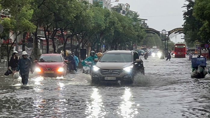 Mưa lớn gây ngập úng nhiều tuyến đường Hà Nội - Ảnh: Báo Hà Nội mới