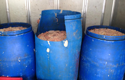 Toàn bộ số hàng trên trên đã bị ôi thiu và biến đổi về màu sắc. Hiện các cơ quan chức năng đã tiến hành xử lý tiêu hủy toàn bộ số bì lợn bị ôi thiu không rõ nguồn gốc nói trên theo quy định.
