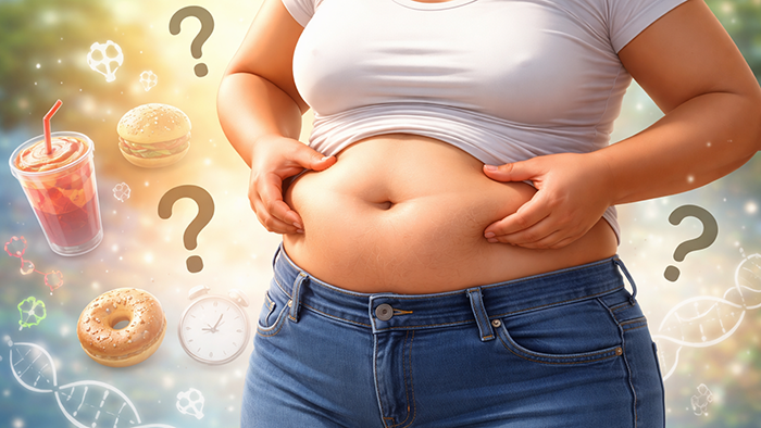 Yếu tố di truyền có thể ảnh hưởng rõ rệt đến quá trình tích tụ mỡ của mỗi người. Theo thông tin từ Viện Dinh dưỡng Quốc gia, một số gene liên quan đến tốc độ chuyển hóa năng lượng, sự phân bố mô mỡ và khả năng kiểm soát cảm giác thèm ăn. Ví dụ, các biến thể của gene FTO được ghi nhận có liên quan đến chỉ số khối cơ thể cao hơn (BMI) và nguy cơ béo phì gia tăng.