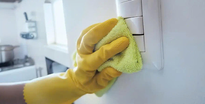 Lưu ý: Đối với công tắc đèn hoặc thiết bị điện, đảm bảo khăn chỉ hơi ẩm, không ướt sũng, để tránh rủi ro chập điện.